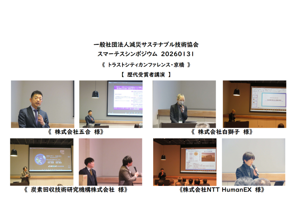 大賞受賞者講演として歴代受賞者である株式会社五合様、株式会社白獅子様、炭素回収技術研究機構株式会社様、株式会社NTT HumanEX様の4社様がご登壇されました。