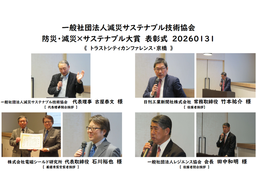 一般社団法人レジエンス協会様、ならびに日刊工業新聞社株式会社様からの後援を受けまして、